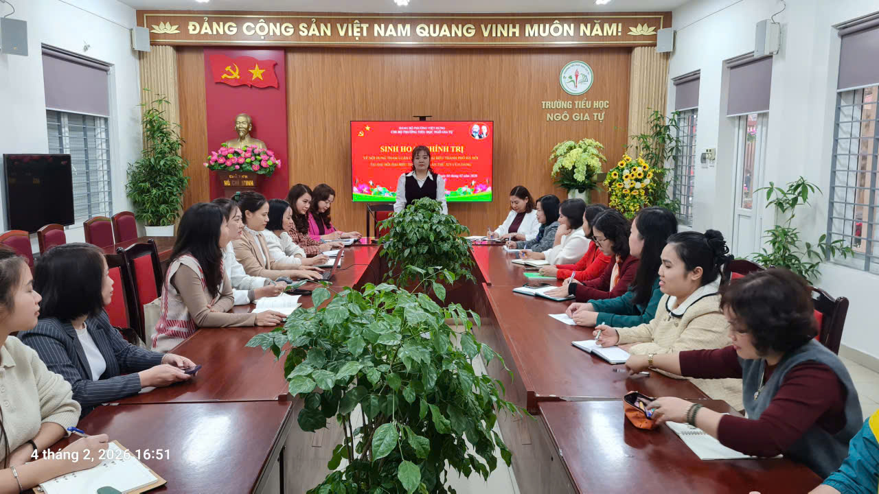 Thực hiện kế hoạch sinh hoạt chính trị, tư tưởng trong toàn Đảng, Chi bộ Trường Tiểu học Ngô Gia Tự đã tổ chức buổi sinh hoạt chính trị về nội dung tham luận của Đoàn đại biểu thành phố Hà Nội tại Đại hội đại biểu toàn quốc lần thứ XIV của Đảng với chủ đề: “Đổi mới phương thức lãnh đạo của Đảng bộ Thủ đô Hà Nội đáp ứng yêu cầu phát triển trong kỷ nguyên mới, góp phần kiến tạo tương lai phát triển của đất nước”.